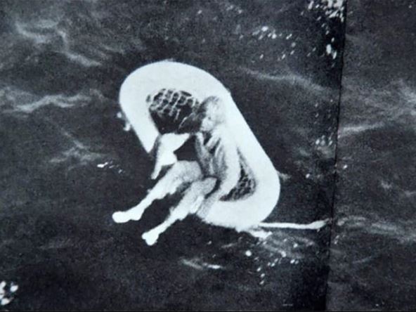 Četvrtog dana više nije osećala žarke sunčeve zrake. Ljuljajući se u talasima, duboko je spavala, blizu smrti. U jutro, međutim, buka i vibracije su je otrgnule od letargije, a ubrzo joj je velika senka zaklonila horizont. Kada je podigla pogled, videla je glave i mahajuće ruke i jedva je čula vriske ljudi. Osećala se kao da visi u svemiru, i dok su je snažne ruke polako podizale, ponovo se onesvestila.