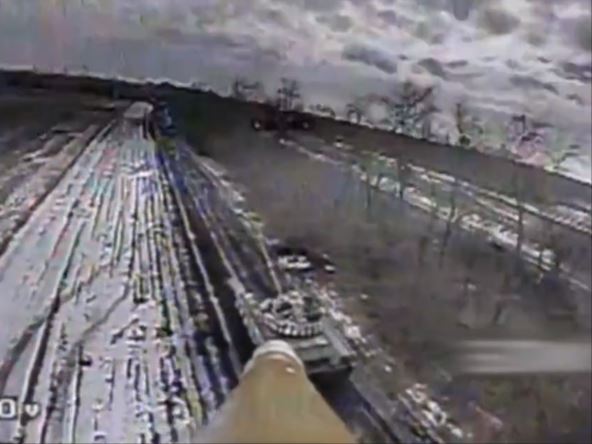 Ukrajinska vojska objavila je snimak za koji kažu da pokazuje uništenje ruskog tenka. Tenk je uništio dron kamikaza. Na snimku se vidi kako se dron približava tenki i dolazi iza njega. Onda ona juriša na njega i onda snimak prestaje.