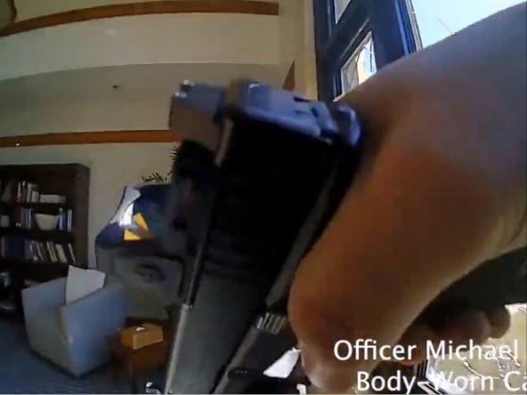 Nakon što su čuli pucnjavu na drugom spratu, policajci su krenuli tamo, a policajac Englebert je ispalio više hitaca na Hejlovu iz jurišne puške. Nakon što je ona pala na pod, policajac Kolazo se pojavljuje i još četiri puta puca u Hejlovu iz pištolja.