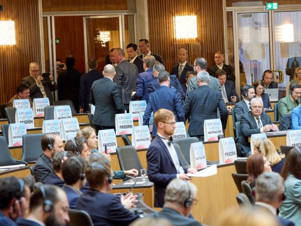 Austrijski zastupnici krajnje desnice napustili su sednicu donjeg doma parlamenta u četvrtak tokom virtuelnog obraćanja ukrajinskog predsednika Volodimira Zelenskog, navodeći da je to "kršenje" statusa neutralnosti Austrije. Članovi Slobodarske partije Austrije (FPO) napustili su svoja mesta kada je Zelenski započeo svoje video obraćanje, ostavljajući male kartice na svojim stolovima s logom stranke i porukom na kojoj je pisalo "prostor za mir", prenosi ORF.