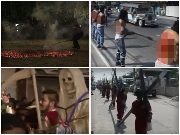 Uskršnja tradicija Filipina sastoji se od samokažnjavanja ili bičevanja. Mladi Filipinci bičem se udaraju po leđima dok ne otupe od bola. Dok neki idu do kraja, pribijajući se na krst. Dobrovoljcima se čekićem zabijaju specijalno naoštreni ekseri u dlanove (iskusnima bukvalno prolaze kroz ruku i pribijaju ih na krst, a malo osetljivijima samo probijaju početak dlana). Poslednjih nekoliko godina sve se češće može čuti osuda ove tradicije, ali je ona toliko ukorenjena na Filipinima da još nema govora o njenom ukidanju. Svake godine se okupi više nego dovoljno dobrovoljaca koji se raduju kada čekaju svoj red da budu prikovani na krst.
