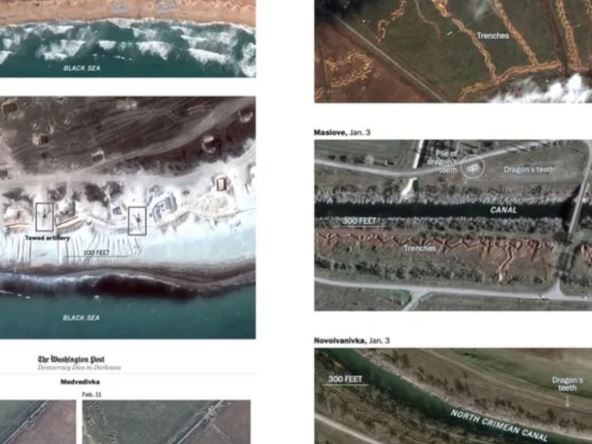 Objavljeni su novi satelitski snimci koji pokazuju zamršenu mrežu rovova na Krimu, ukrajinskom poluostrvu koje su Rusi okupirali još 2014. godine. Rusija je izgradila na desetine odbrambenih struktura, koje se protežu kilometrima, piše Vašington post. Snimke je Vašington postu dostavila kompanija Maksar.