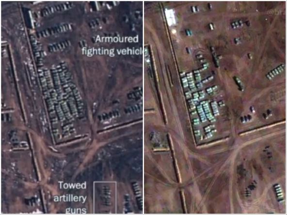 U januaru ove godine magacin je izgledao prepun tenkova, oklopnih vozila i druge opreme. Ali već 11. februara je izgledalo kao da je tamo bilo vrlo malo vozila i opreme, a do 27. marta prostor je bio potpuno prazan. Objekat se nalazi u blizini sela Medvedivka, nedaleko od granice sa Hersonom, na jugu Ukrajine, piše Jutarnji list.