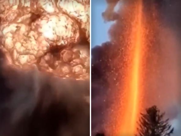 Snimak je objavljen na Tviteru i na njemu se vidi ogromna eksplozija i kako se vatrena pečurka podiže visoko u nebo. U jednom trenutku počinje da liči na lavu, a vatra ubrzo nestaje i ostaje ogroman oblak dima. Na snimku se čuju i jezivi zvuci eksplozije.