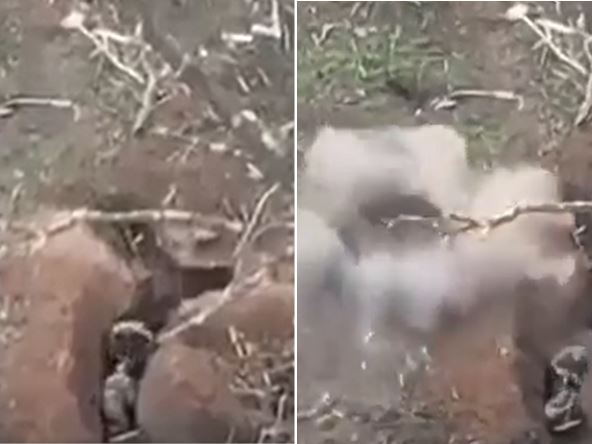 Na frontu u Ukrajini nastao je neverovatan snimak dronom koji kruži društvenim mrežama, a objavljen je na "Telegram" kanalu "Vagner" grupe koju predvodi Jevgenij Prigožin. Na snimku se navodno vide dvojica ruskih vojnika koji su opkoljeni u rovu. Nakon kraće borbe, ukrajinski vojnici bacaju granatu na njih.