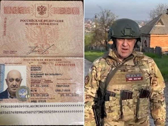 Prema prvim fotografijama, otkriven je i Prigožinov lažni pasoš, u kojem je navedeno da se zove Vladimir "Bobrov", uz njegovu fotografiju i lažne podatke o datumu i mestu rođenja, jer je navedeno da je rođen 27. januara 1956. u oblasti Tverskaja u blizini Moskve. Zapravo, on je rođen u Sankt Peterburgu 1. juna 1962. godine, kada se taj grad zvao "Lenjingrad".