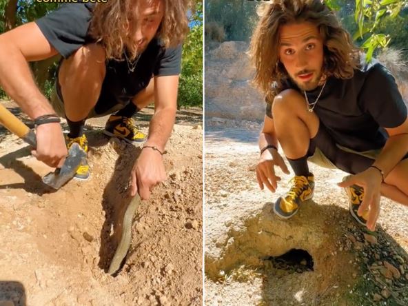 Muškarac koji na društvenoj mreži "TikTok" ima oko 1,6 miliona pregleda, je rešio da spase jednu zmiju koja se zaglavila u rupi. Kopao je dok je nije izvukao.