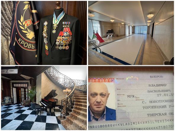 Tokom pretresa, policija je pronašla ormar pun perika, zalihe zlatnih poluga, skladište pištolja, prepariranog aligatora i uramljenu fotografiju za koju ruski mediji tvrde da predstavlja odsečene glave neprijatelja prognanog privatnog vojskovođe. Prokremljanski list “Izvestija” objavio je fotografije i video snimak naoružanih oficira koji pretražuju Prigožinovu vilu dok je bio prognan u Belorusiji 24. juna, nakon što je Vagner pokrenuo oružanu pobunu protiv Putina pre manje od dve nedelje - koja je ubrzo zaustavljena nakon što je Minsk pomogao da se postigne dogovor o okončanju sukoba.