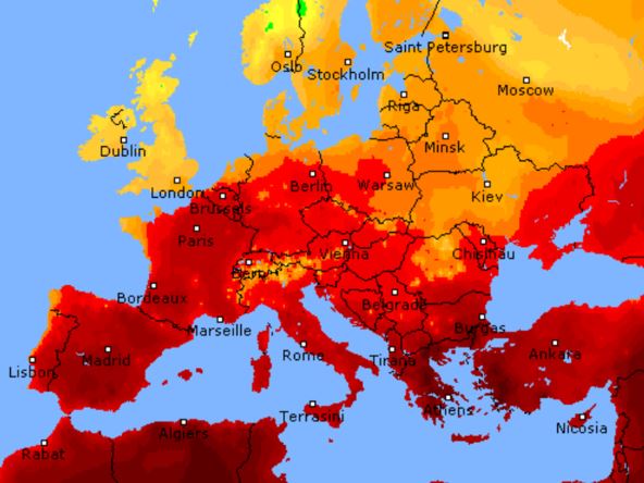 Južna i istočna Evropa se spremaju za rekordne temperature. Delovi Italije bi mogli da dosegnu temperature od 48 stepeni Celzijusa, što izaziva strah od povećanja smrtnih slučajeva uzrokovanih visokim temperaturama.