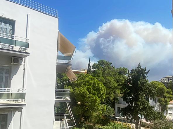 "Upravo smo dobili upozorenje o velikom požaru kod grada Korinta i da se stanovništvo evakuiše u Lutraki. Slika je iz našeg hotela", napisao je taj korisnik. Na fotografiji se vidi ogroman dim koji kulja iza nekoliko drveća.
