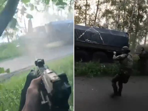 Jedno rusko vozilo je upalo u zamku ukrajinskih diverzanata kod Belgorodske oblasti u Rusiji, a snimak borbe se pojavio na društvenim mrežama. Na snimku se vidi grupa diverzanata koja izleće iz šume i otvara vrata na ruski kamion.
