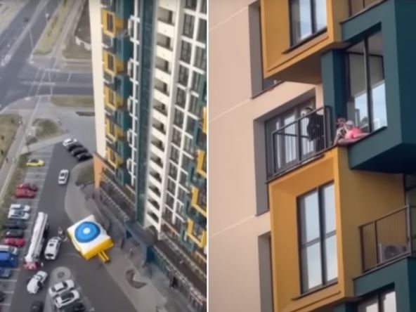 Čitava drama, zabeležena kamerom, odigrala se na 24. spratu stambenog solitera, a devojka je ležala, kako se čini, na površini od svega dvadesetak centimetara.