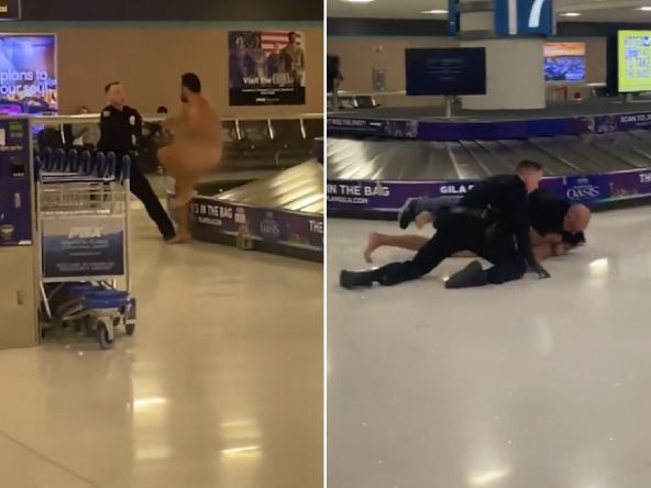 Jedan radnik uhapšen je nakon što se skinuo go na aerodromu u američkom Finiksu posle čega je trčao po objektu i radio sklekove. Incident se dogodio u delu za preuzimanje prtljaga, a muškarca su na zemlju oborili policajac i još jedan zaposleni. Šokirani putnici su prizor snimali mobilnim telefonima. Može se videti da je pomahnitali radnik skinuo svoju odeću dok je sve vreme galamio.