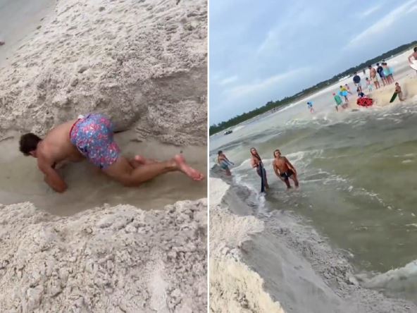 Na Floridi je jedan muškarac, kome je bilo dosadno, iskopao kanal na plaži i spojio dve vodene površine. Situacija je toliko izmakla kontroli da je morala biti pozvana policija koja ga je na kraju uhapsila.