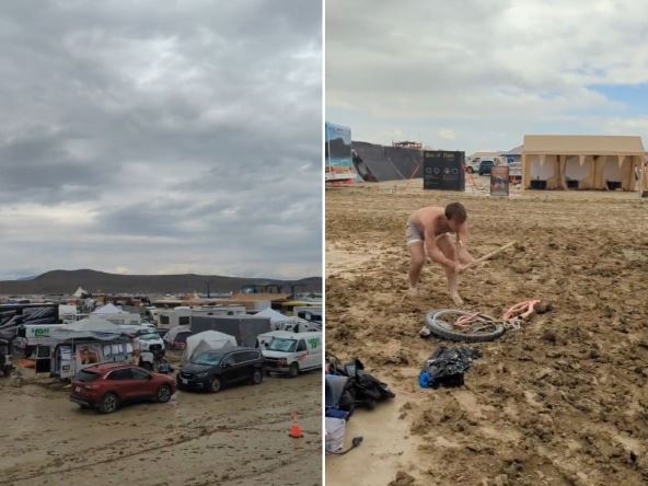 Veruje se da je na mestu održavanja festivala u petak palo 15 metara kiše po kvadratnom metru, saopštila je Nacionalna meteorološka služba u Renu. U Nevadi se očekuje još sedam centimetara kiše između subote i nedelje, a ne očekuje se da će se uslovi dovoljno poboljšati kako bi se vozilima omogućilo kretanje.