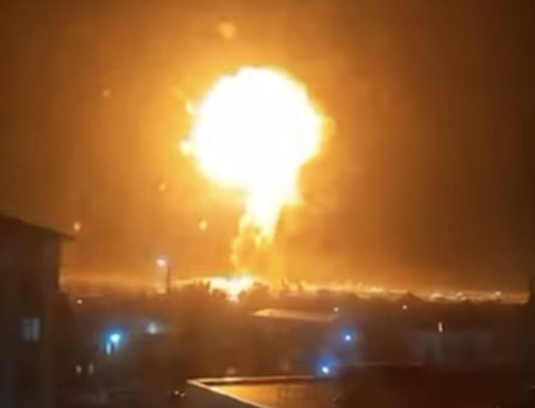 Nekoliko video snimaka koji su kružili društvenim mrežama prikazuju ogroman stub vatre i dima koji se nadvija u noćno nebo.