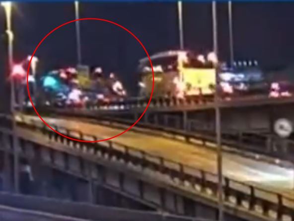 Na snimku se vidi autobus koji ide prilično sporo, a onda jednom pada. Nema tragova kočenja i nije poznato šta se dogodilo.