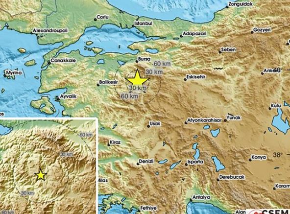 Zemljotres magnitude pet stepeni po Rihterovoj skali pogodio je danas Tursku, javlja "EMSC", portal koji registruje svaki potres na svetu. Potres se dogodio u Bursi na zapadu Turske na dubini od 10 kilometara.