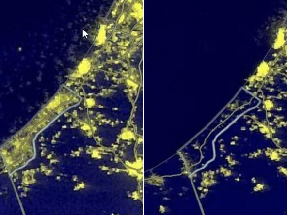 Rat u Izraelu je počeo u subotu 7. oktobra kada je Hamas ispalio rakete na Izrael, dosad je stradalo najmanje 1.300 Izraelaca, odnosno 950 ljudi u Gazi. NASA je u četvrtak objavila satelitske snimke od petka 6. oktobra i od 11. oktobra, kada je čitav Pojas Gaze potonuo u mrak, prenosi "Indeks".