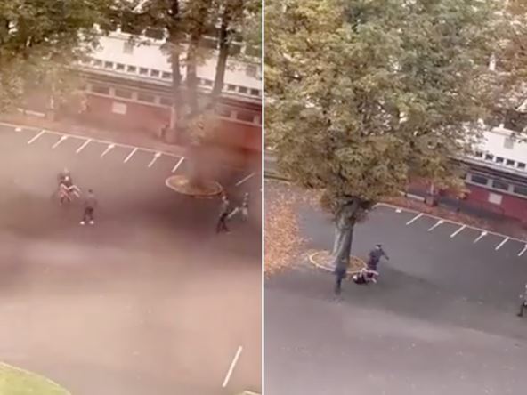 Na društvenim mrežama pojavili su se prvi snimci napada na kojima se vidi nekoliko ljudi u školskom dvorištu kako pokušavaju da savladaju počinioca.