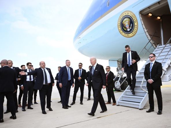 Bajden je u Izrael došao avionom Air Force One, a Tajna služba koordinisala je njegov dolazak sa vojskom, koja sada u regionu ima najveći nosač aviona USS Džerald Ford, a u Sredozemnom moru je i nosač aviona USS Dvajt D. Ajzenhauer. On se priključio borbenoj grupi koja takođe uključuje krstaricu sa navođenim raketama USS Normandi, razarače sa navođenim raketama USS Tomas Hudner, USS Remidž, USS Carnei i USS Ruzvelt.
