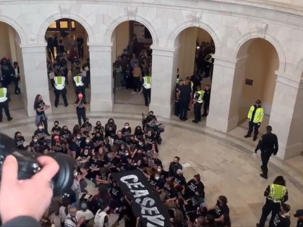 Propalestinski demonstanti upali su u hol Kapitol Hila zahtevajući hitan prekid sukoba u Gazi i Izraelu.