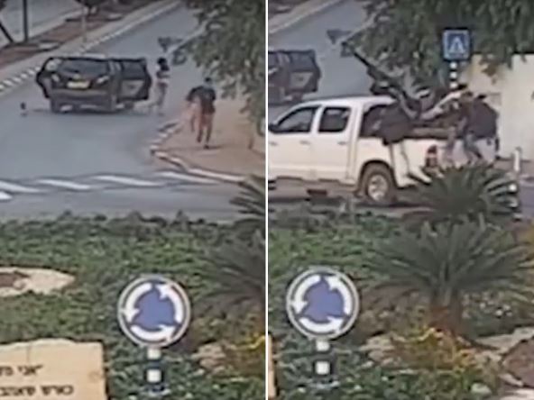 Sinoć se na društvenim mrežama pojavio novi snimak Hamasovog upada u Izrael, tačnije u izraelski grad Sderot, koji se nalazi tik uz granicu sa Gazom. Na snimku nadzorne kamere u Sderotu 7. oktobra (na dan napada Hamasa na Izrael) jasno se vide dva Tojota vozila koja prevoze naoružane Hamasove militante.