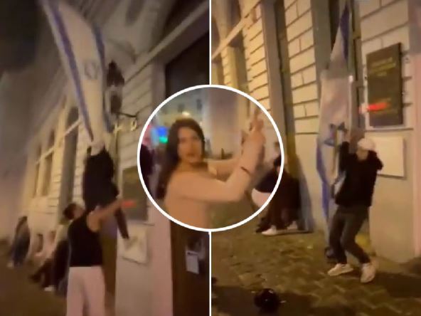 Na snimku se vidi jedna mlađa devojka koja imitira pucnjavu u pravcu izraelske zastave dok dva muškarca zajedno skidaju izraelsku zastavu. Stariji muškarac je pomogao mlađem da dohvati zastavu i povuče je na dole, ali su ubrzo pobegli sa lica mesta jer su prišla dva starija čoveka i tu se sve završilo.