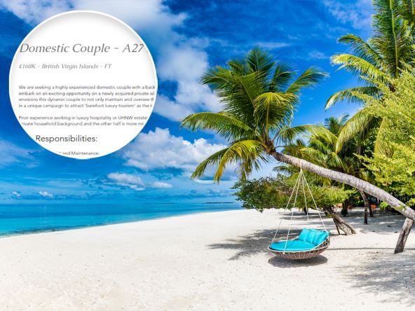 Misteriozni milijarder traži stanare za svoj raj na karipskom ostrvu. Strani mediji objavili su oglas za posao objavljen na sajtu agencije za zapošljavanje Ferfaksa i Kensingtona u kojem jedan biznismen nudi 160.000 funti godišnje paru koji će živeti i održavati njegovo privatno karipsko ostrvo. Njihov zadatak, dok tamo žive, je da na društvenim mrežama promovišu transformaciju ostrva iz gradilišta u luksuzni raj.