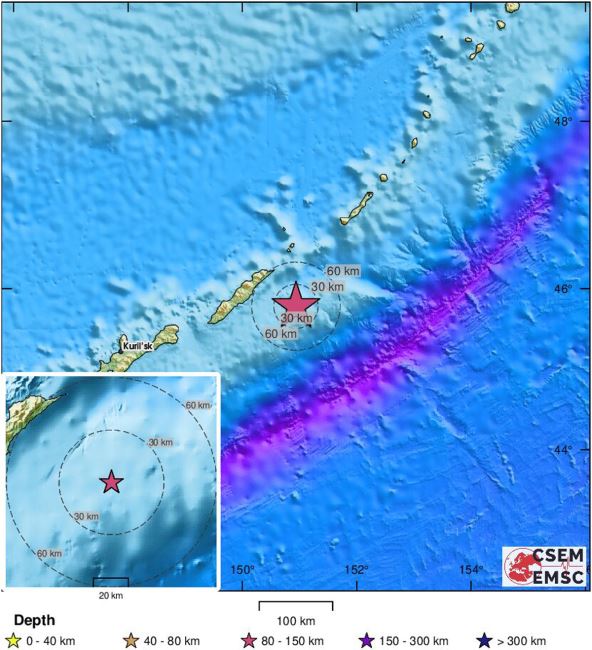 Zemljotres jačine 6,1 stepeni po Rihterovoj skali pogodio je Rusku Federaciju u četvrtak uveče, javlja "EMSC", portal koji registruje svaki potres na svetu. Potres se dogodio oko 21.10 časova u četvrtak, a epicentar je bio u Kurilskim ostrvima na dubini od oko 100 metara.