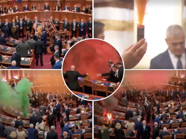 Danas je u Skupštini Albanije održana sednica o usvajanju budžeta za 2024. godinu na kojoj je došlo do brojnih incidenata, piše "ABC News", a prenosi "Kosovo onlajn". Poslanici opozicije su napravili barikade od stolica, a nakon toga su aktivirali dimne bombe.