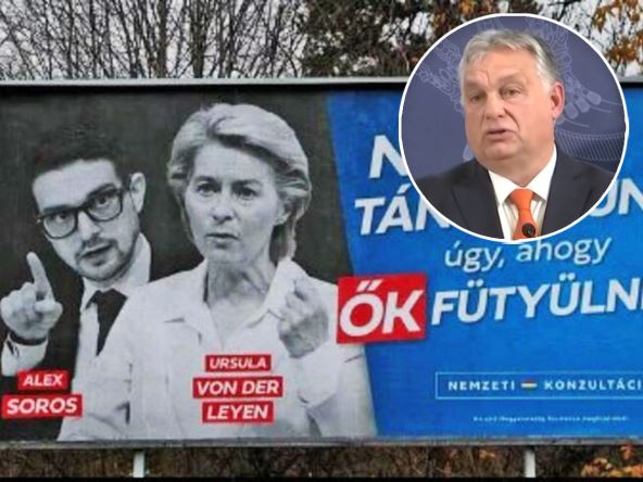 Navodi se da su tokom protekle noći postavljeni plakati kampanje za izbore za Evropski parlament u junu naredne godine. Na bilbordima su prikazani Fon der Lajen i Aleks Soroš, sin liberalnog milijardera i investitora mađarskog porekla Džordža Soroša, višegodišnje mete neprijateljstva Orbanove stranke Fides.