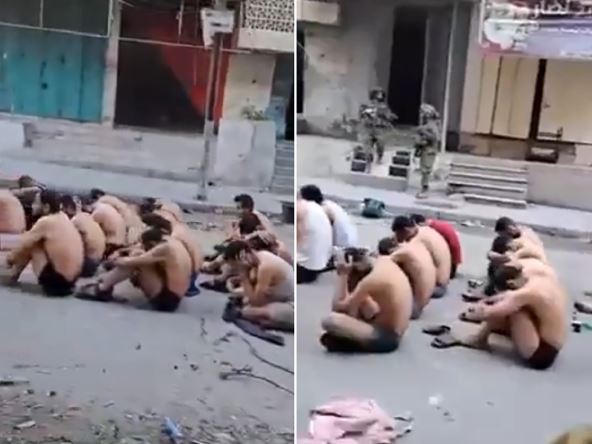 Fotografije iz Gaze pokazuju masovno zatvaranje muškaraca od strane izraelske vojske. Muškarci su bili primorani da se skinu i da ostanu samo u donjem vešu i da kleknu na kolena sa zavojem na očima. Takođe su bili primorani da uđu u zadnji deo vojnog vozila.