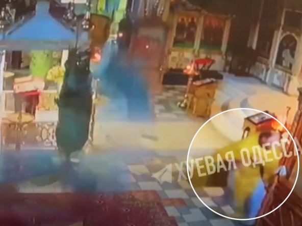 Ukrajinski sveštenik zamalo je poginuo kad je crkvu u Odesi navodno pogodio projektil. Nadzorna kamera zabeležila je momenat kad se u petak ujutru plafon obrušio pored pravoslavnog sveštenika u crkvi Svetog Vavedenja u Odesi. Na snimku se vidi kako sveštenik kadi crkvu samo nekoliko sekundi pre nego što se obrušio veliki deo plafona. Nijedna ikona nije oštećena.