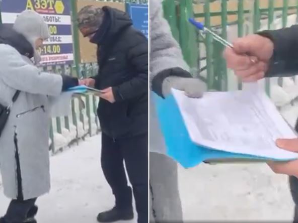 U Moskvi u debelom minusu, desetine ljudi se okupilo u ponedeljak popodne da potpišu papire za Nadeždina u njegovom sedištu, navodi izveštač Moskovskog tajmsa.