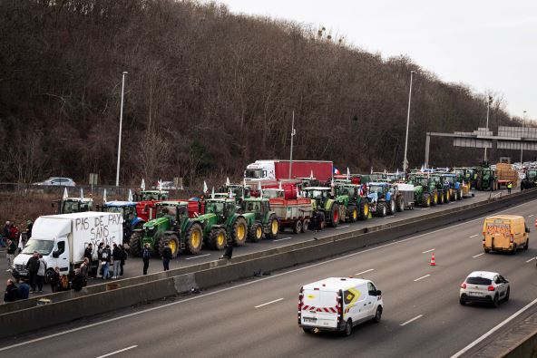 Od ponedeljka je počela blokada saobraćajnica u Francuskoj od strane poljoprivrednika, a "BFM TV" navodi da je nastavljena i blokada Pariza i da su traktori u pokretu na glavnim auto-putevima oko prestonice i nekoliko regiona zemlje. Jedan konvoj poljoprivrednika je prenoćio u Limožu i rano ujutru je krenuo ka kvantaškoj pijaci Runži blizu Pariza, najvećoj u Evropi, ispred koje se od ponedeljka nalaze oklopna vozila policije koja treba da spreče njenu blokadu.