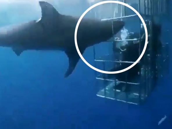 Velika bela ajkula nastradala je kad je pokušala da uleti u kavez sa roniocima kod obale Meksika! Užasavajući momenat zabeležila je kamera. Na snimcima se vidi kako velika bela ajkula pliva ka kavezu nakon čega joj se glava zaglavila između metalnih šipki, preneo je Sun.