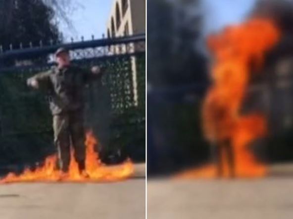 "Više neću biti saučesnik u genocidu", rekao je navodno vojnik pre nego što se zapalio. On se polio tečnošću i zapalio, uzvikujući "Sloboda Palestini". S povredama opasnim po život prebačen je u obližnju bolnicu. Američko ratno vazduhoplovstvo potvrdilo je da je u pitanju vojnik koji aktivno služi u vojsci SAD.