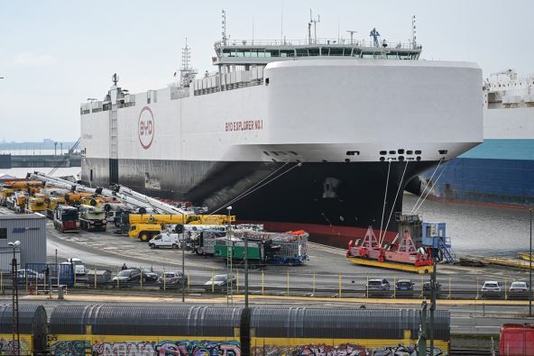 Sa kineskog broda "BYD" u nemačkoj luci Bremerhafen juče je istovareno na hiljade električnih automobila. Isporuku je izvršio kineski "BYD Explorer br. 1", prvi od osam teretnih brodova koje je kineska grupa posebno naručila da proširi svoj izvoz, piše France24.
