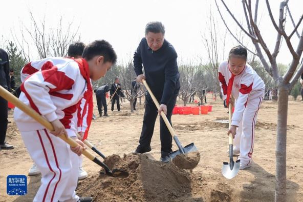 Dok je sadio drveće, pitao je i decu na lokalitetu o njihovom učenju, životu i učešću u radu i sportu. On je istakao da mala deca treba da se bave radom i pošumljavanjem od detinjstva i razvijaju svest da poštuju i vole prirodu. Tokom razgovora sa zvaničnicima i lokalnim stanovništvom na licu mesta, Si je podsetio da se ove godine u Kini obeležava 45. godišnjica uspostavljanja Nacionalnog dana sadnje drveća i ocenio da su Kinezi postigli izuzetna dostignuća u svojoj posvećenosti sadnji drveća i pošumljavanju.