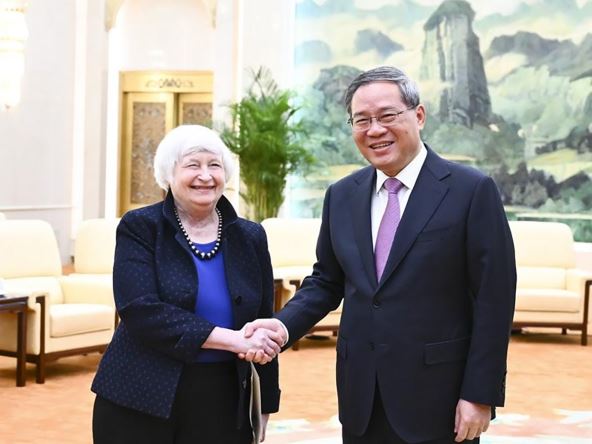 Napomenuvši da odnosi Kine i SAD-a počinju da se stabilizuju pod strateškim vođstvom dveju šefova država, Li je rekao Jelen da se Kina nada da će dve zemlje biti partneri uz uzajamno poštovanje, miroljubivu koegzistenciju i saradnju od koje svi dobijaju. Premijer je izrazio nadu da će SAD raditi sa Kinom na nastavku implementacije važnog konsenzusa dvojice šefova država i realizacije njihove vizije iz San Franciska.