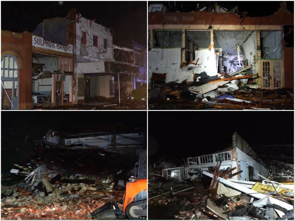 Grad Sulphur, u istočnoj Oklahomi, bio je posebno teško pogođen. Na snimcima posledica vidi se sravnjene kuće i prevrnuta vozila. Prema zvaničnim podacima, u Oklahomi je prijavljeno oko 100 povređenih. Gradovi Holdenvil i Marijeta takođe su teško oštećeni.