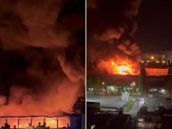 Na snimcima se vidi ogromni plamen koji se diže u nebo dok istovremeno odjekuju sirene i eksplozije. Vatra je ugašena tek u četvrtak ujutru.