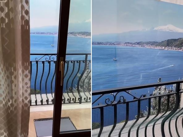 Dok je snimala za TikTok šta joj se dogodilo, Klarisa je pokazala da se iz jednog ugla ne prepoznaje da je to plakat, ali kad se udaljite vidi se da je to, plavo prelepo more, samo ogromna slika. Pravi pogled je ruševina belog zida i redovi prozora sa belim rešetkama. Klarisa je rekla: "Neko je iznajmio sobu sa pogledom na more. Osećam se prevarenom. Niko me do sada nije ovako prevario".