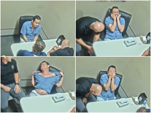 Tokom ispitivanja, Perez mlađi je počeo da čupa kosu, udara se i cepa košulju, pri čemu su mu se policajci nasmejali i rekli mu da stresira svog psa, rezimirao je sudija. Na snimku se vidi kako u jednom trenutku leži na podu i drži svog psa. Na kraju, detektivi su lagali i rekli Perezu da je pronađeno telo njegovog oca, da je u mrtvačnici sa ubodnim tragovima. Perez je tada lažno priznao ubistvo i ostao sam u prostoriji, gde se vidi kako pokušava da se obesi.