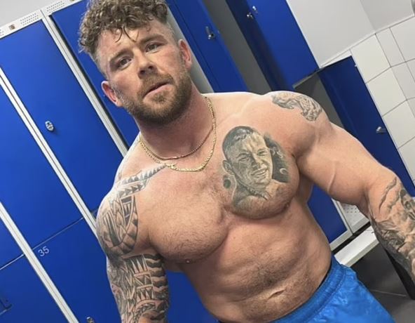 Porodica je odabrala da pokojnika poslednji put prikaže u toples izdanju, kako bi mu se videli mišići i tetovaže. Na slici je u trenerci i pokazuje bicepse na stepenicama ka carstvu nebeskom.