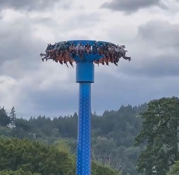 Atrakcija "AtmosFEAR" u zabavnom parku zaglavila se na samom vrhu, saopštio je zabavni park.