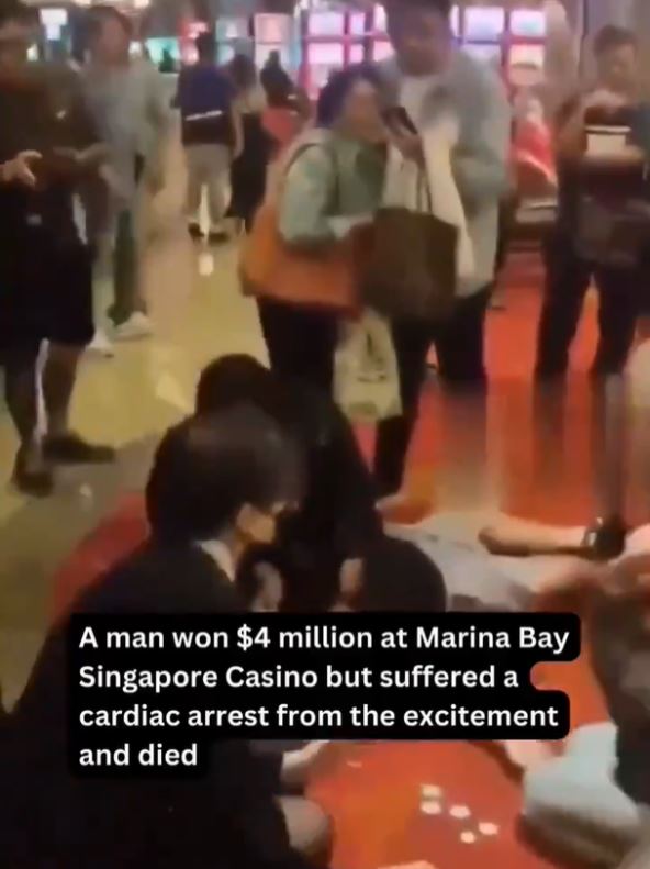 Na društvenim mrežama pojavio se snimak iz Singapura na kojem se vidi muškarac koji je dobio infarkt zbog velikog uzbuđenja nakon što je osvojio četiri miliona dolara na lutriji. Mnogi su prišli da mu pomognu, zvali su i Hitnu pomoć ali mu nažalost nije bilo spasa.