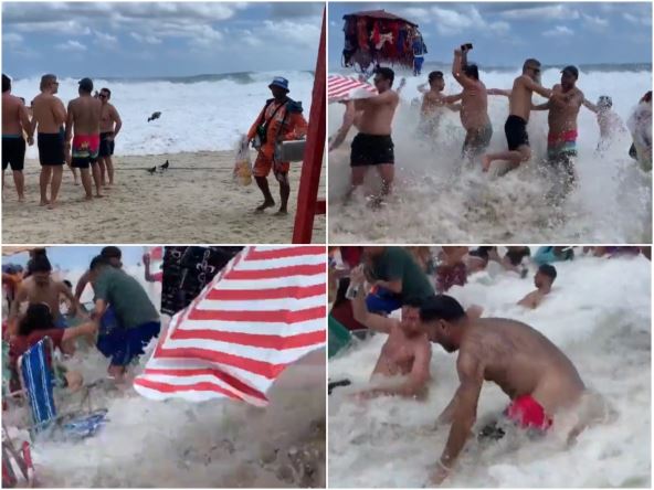 Turisti su "zbrisani" sa svojih ležaljki na plaži nakon što ih je poklopio džinovski talas. Ljudi su snimali atmosferu na plaži i uspeli da uhvate i talas koji je išao ka njima. Pretpostavlja se da je talas bio visok 3,5 metra, a kada je voda stigla do dela gde su turisti, oborila ih je sa ležaljki i iščupala suncobrane.
