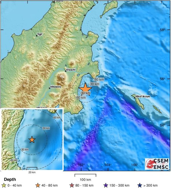 Zemljotres je zabeležen u blizini obale Kamčatke - na dubini od 61 kilometra.